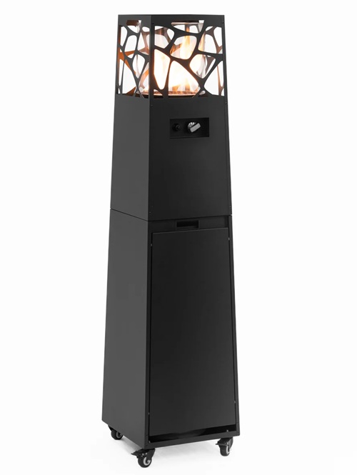 Brīvi stāvošs āra sildītājs ar izsmalcinātām dekoratīvām detaļām, kas piešķir premium izskatu terasei vai dārzam.